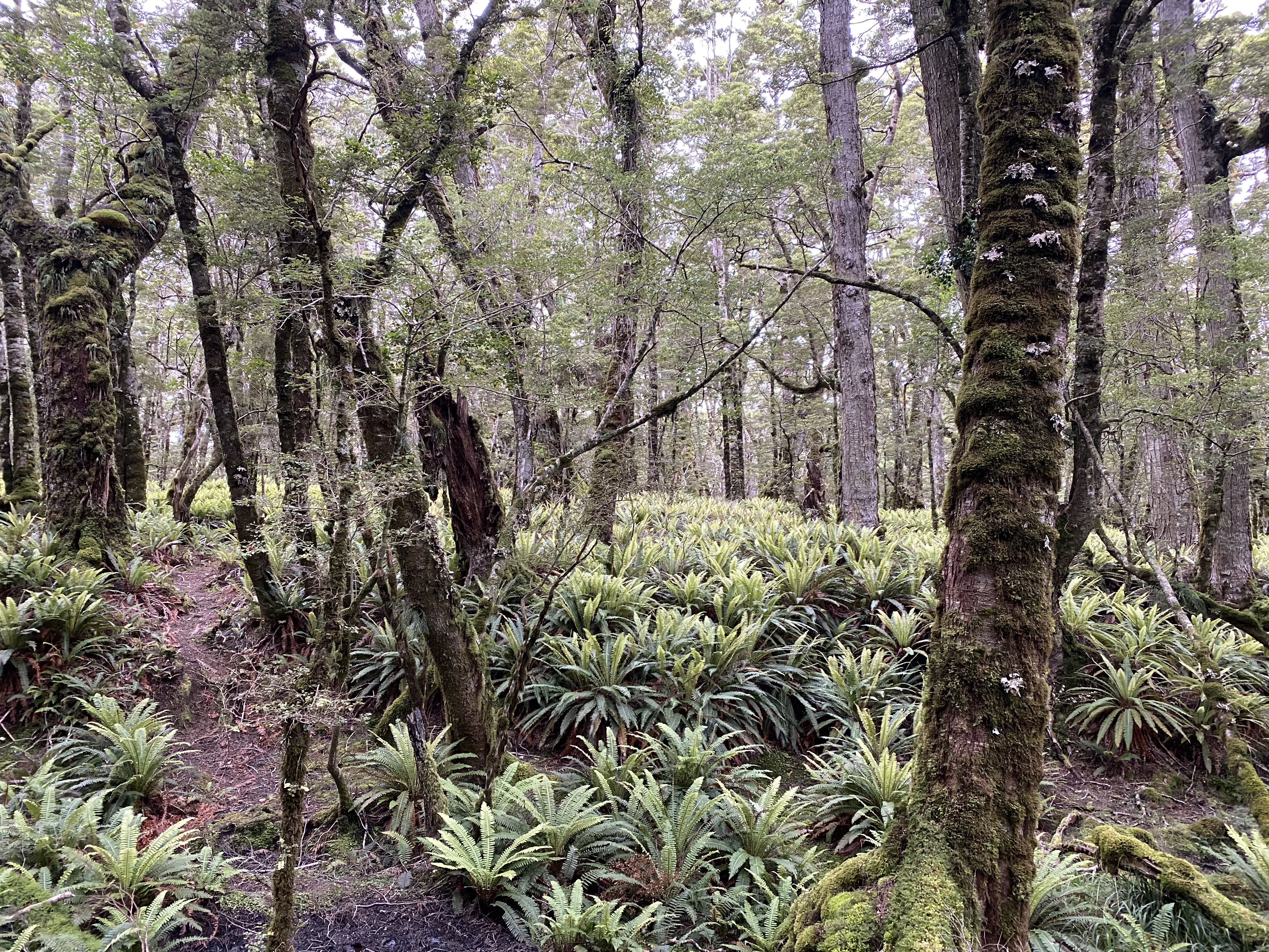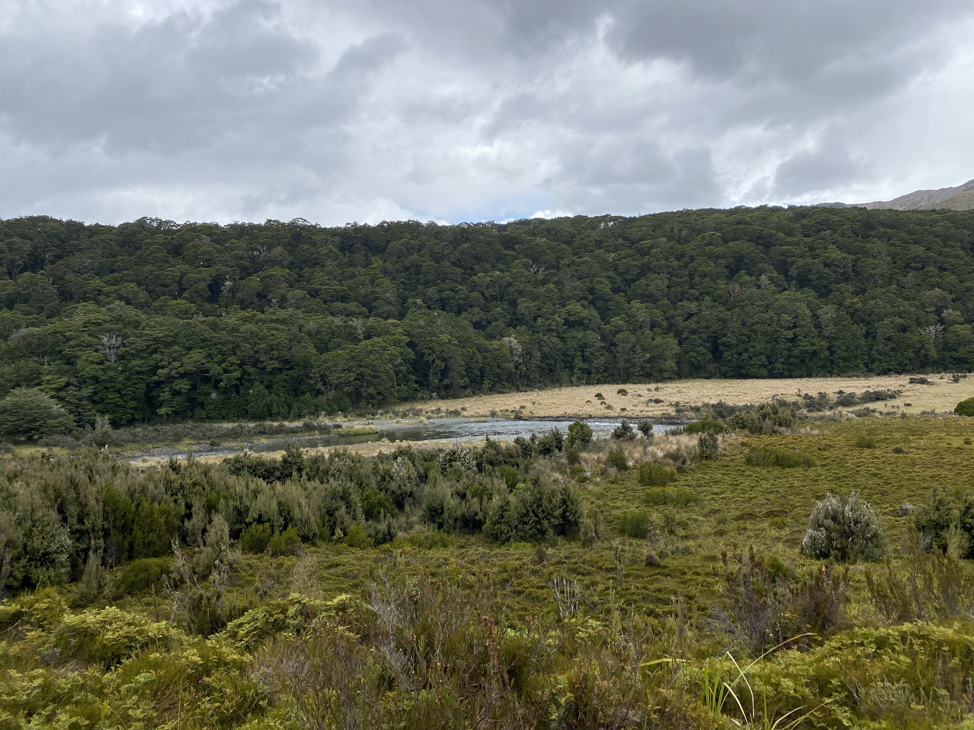 Day 3 and 4 continued thru the Takitimu Mountains , pushing ever further northwards towards the Te Anau highway SH94 . The Aparima Hut was the beginning of long open sections of the famous RED TUSSOCK and this represented the major challenge of the last days walk out to Princhester Hut. The spongy ground and often Red Tussock up to eye level made it hard to stay on the route . Marker poles were hard to spot so the gps mapping was frequently used to ensure an error had not occurred .