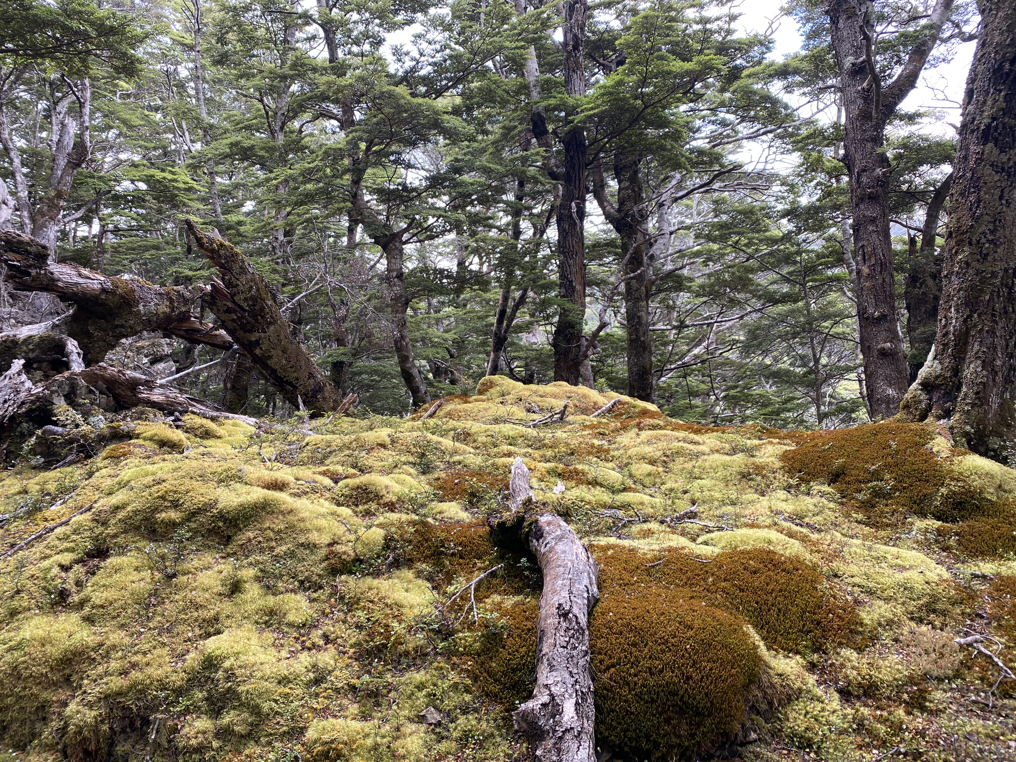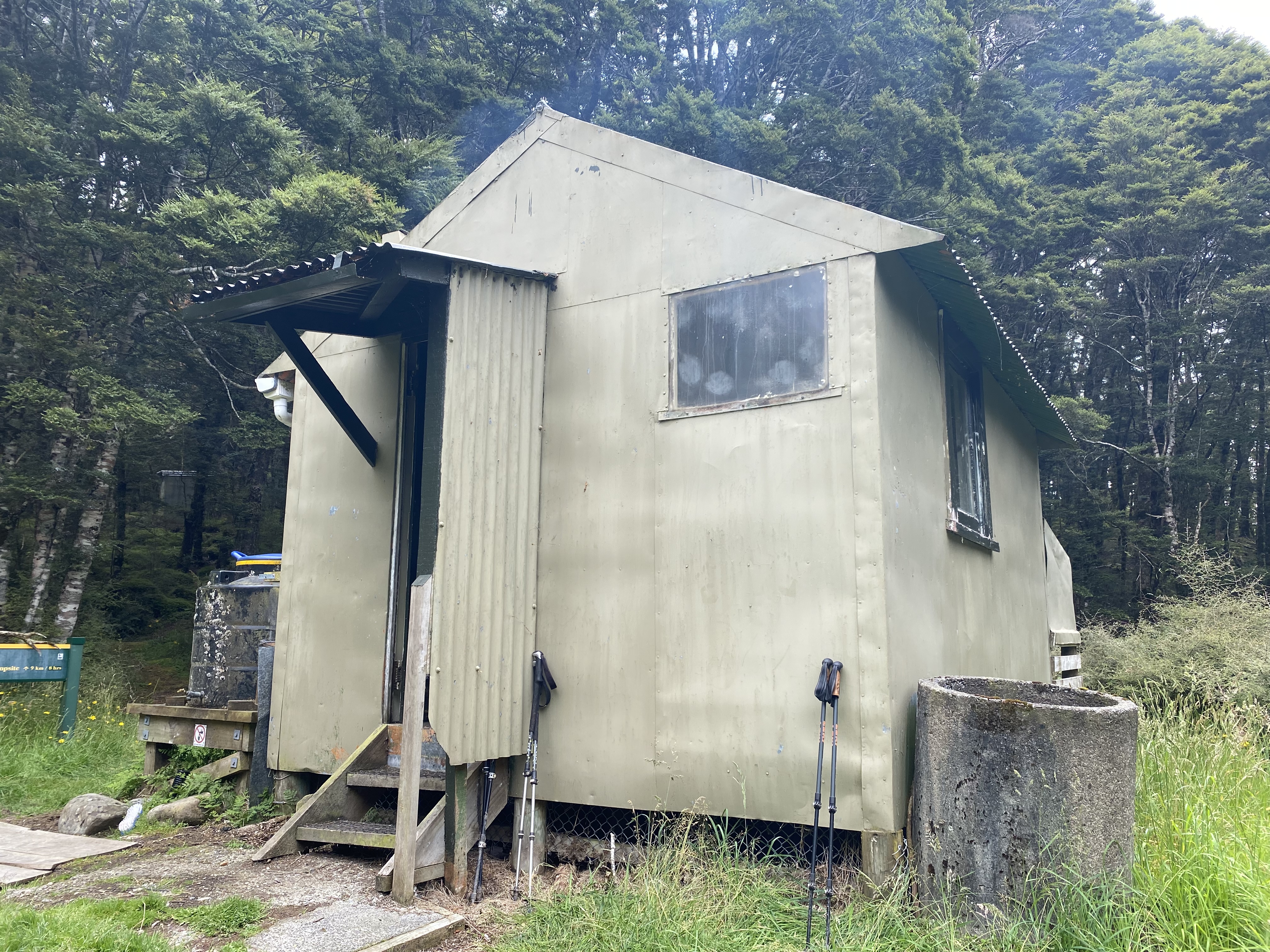 Thick misty cloud enveloped the valley and by 4 am some of this mist was condensing as on the tree under which I pitched the tent and fell as drips . I hurriedly packed up everything including the wet tent and embarked on a steep ascent of a ridge line that went to 1023 metres. Whiteout conditions made finding the trail posts hard to find however the still almost windless ascent was concluded without too much trouble. From the top the descent was pleasant through Beech forest till arrival at the Lower Wairaki Hut. An early day and a chance for a lazy afternoon .