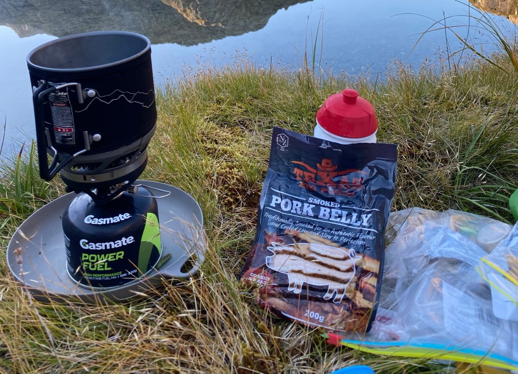 In the last year my “ meat go to “ has has come from this New Plymouth business called Taxas BBQ foods . They produce these fantastic 200 gm packs of well cooked Pork Belly and or Beef Brisket . The product keeps well in the backpack and I haven’t had any issues with a package spoiling . Can be eaten cold or can be reheated in the bag with hot water or cooked in a pot / pan. The high fat content is important for long term sustainable energy and satiety.