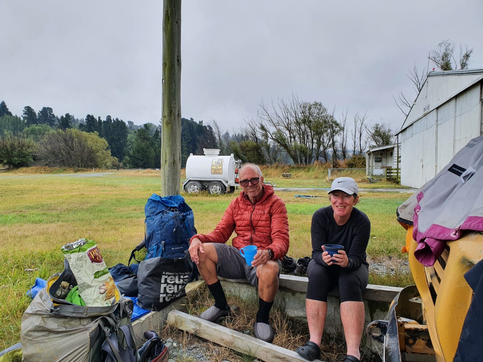 We found a tin topped shelter that allowed us to get into a set of dry gear and thankfully my contact from the Peel Forest Farmstay arrived to pick me up . The girls happily joined me as the Farmstay was happy for 2 more paying guests .