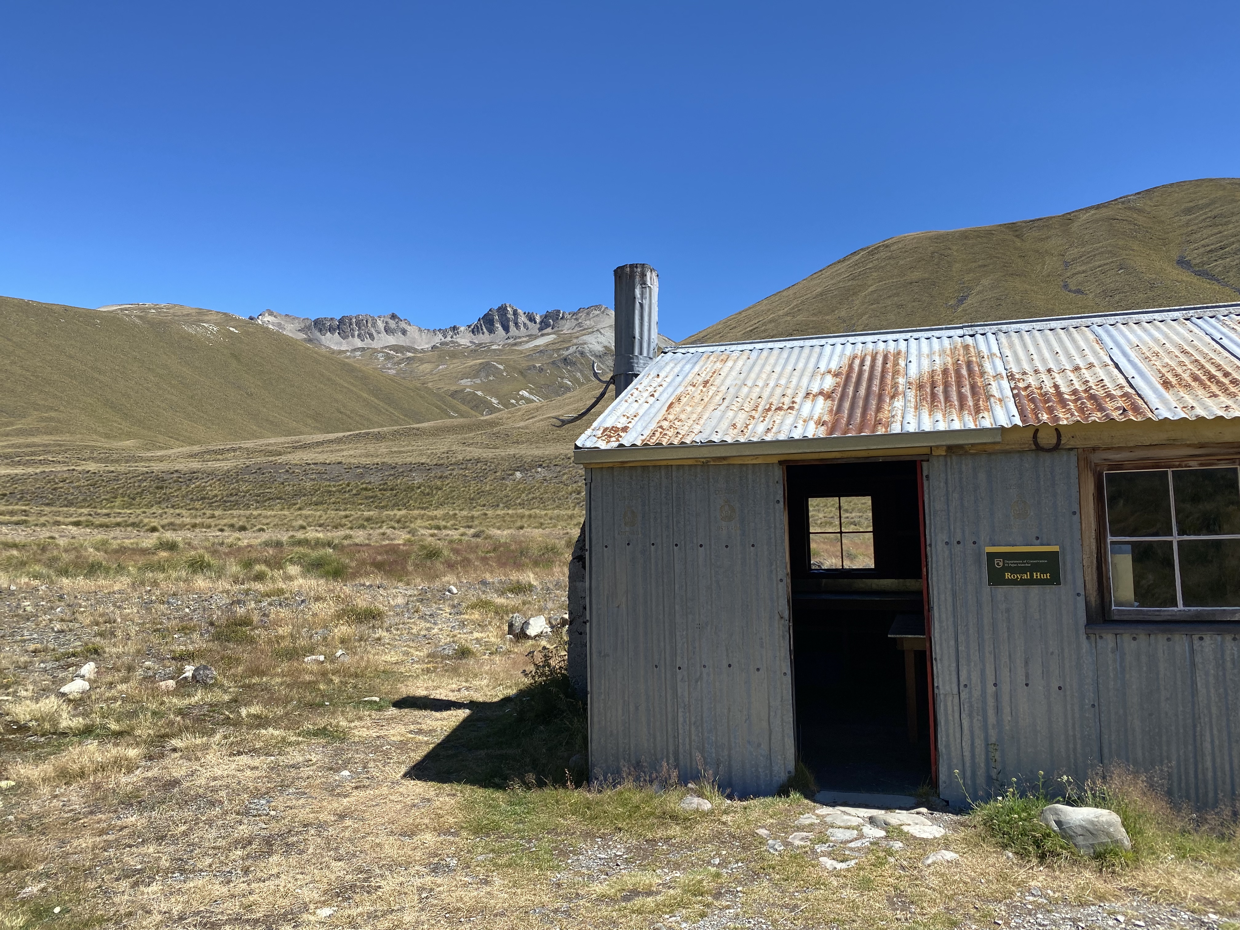 Royal hut illustrates a frustrating bad habit of TA walkers who have left rubbish in the fire place . With zero firewood anywhere , having a fire is an academic impossibility , yet some fuckwit TA walkers deem it acceptable to dump rubbish there . Idiots giving us all a bad name . Pack in pack out the moto .