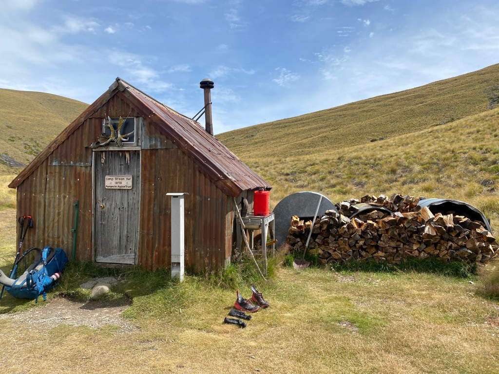 Was a pleasant walk into the first hut “ Camp stream hut “ A private hut controlled by the MacKenzie basin Alpine trust . Great spot with ample firewood flown in .