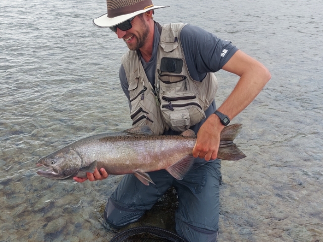 Lieven is pretty good at catching these Salmon on the Rakaia , pre flood .