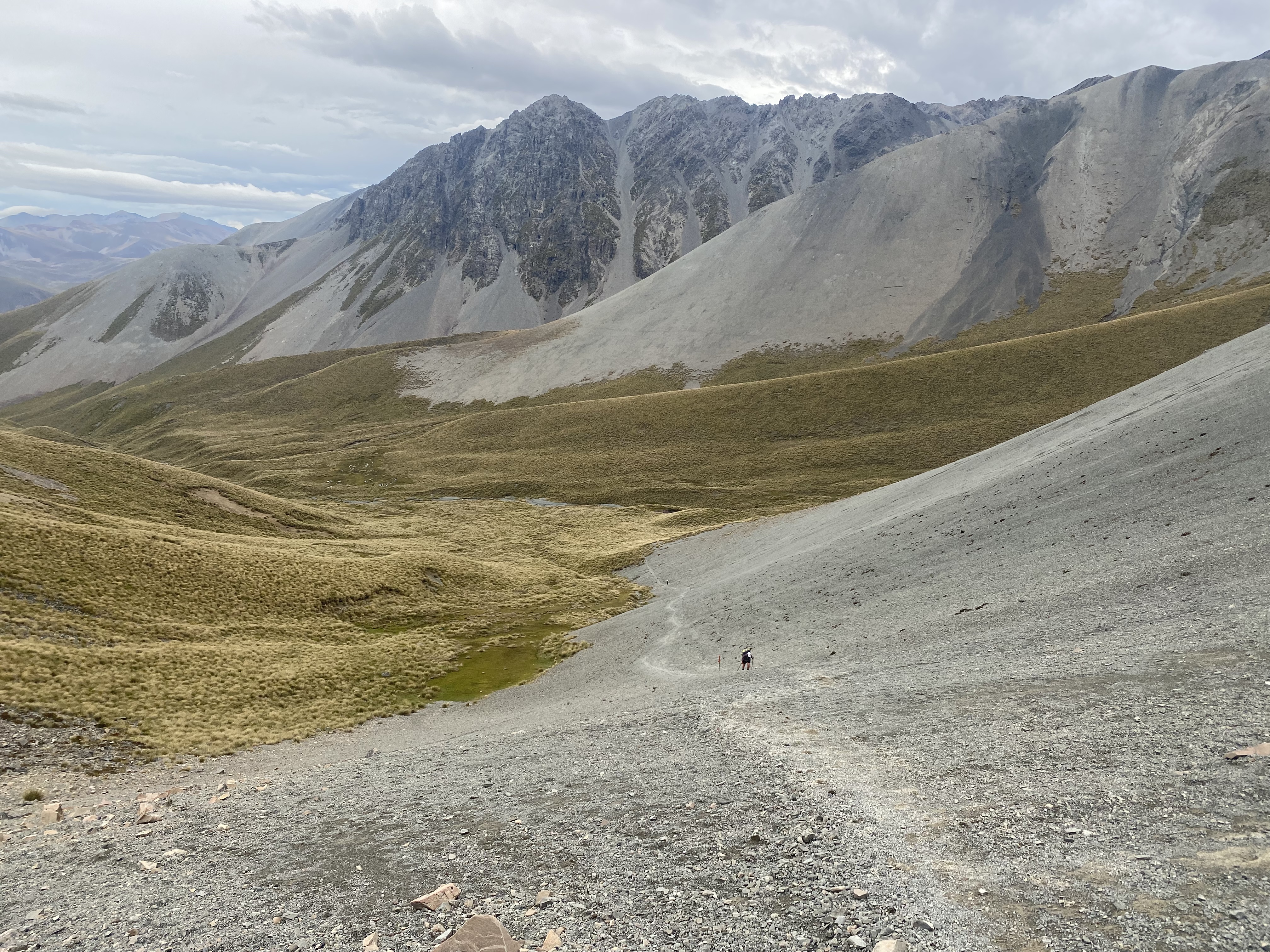 Lieven was this cool guy who gave me my lucky day hitch all the way out of the Rakaia and back to Lake Clearwater on the previous section . I meet his lovely Italian girlfriend again yesterday just as she was nearing stag saddle heading South , me North .
