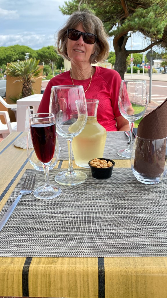 The highlight for me of our stay was the very pleasant evening we spent with Patrick and Maryse, a very kind French couple we first met somewhere on the trail on the Loire . That invited us to a ā French meal ā which was a real treat . Started with a lovely bottle of champagne and a succession of very delicious courses finishing with fine French cheeses. The meal was I suspect the norm for French eating , a slow unhurried eating style where the conversation and good company make for convivial company . We both enjoyed very much .