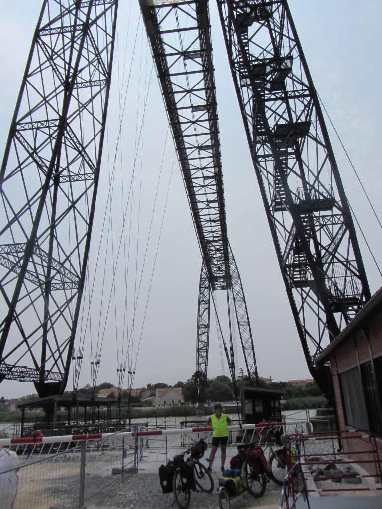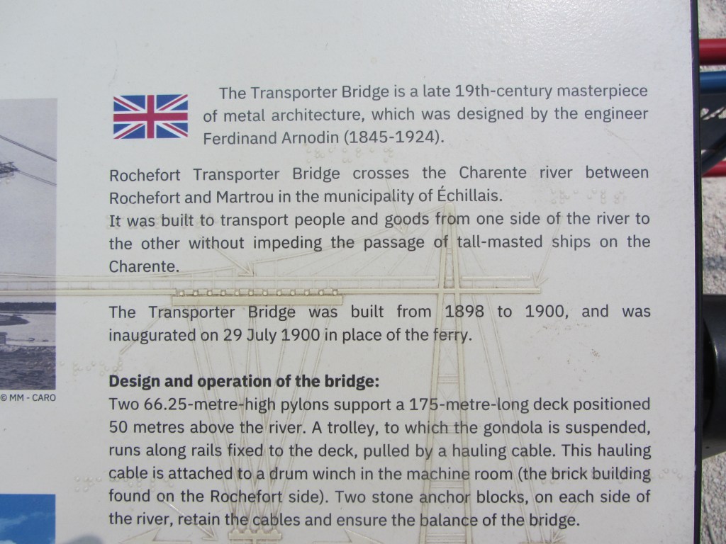 We left La Rochelle bright and early , after a patisserie & coffee stop and carefully negotiated a safe route out of La Rochelle and onto the road towards Rochefort, and then encountered a classic gondola bridge that crosses a large river , estuary . This is a very old structure that was built way back in the very early 1900ās . It was the only road link until the 1960ās . Basically a large platform that drives its cargo across the river . Apparently the only bridge of this type left in France , and itās huge . Was built in the age of tall sailing ships that came up to the port of Rochefort