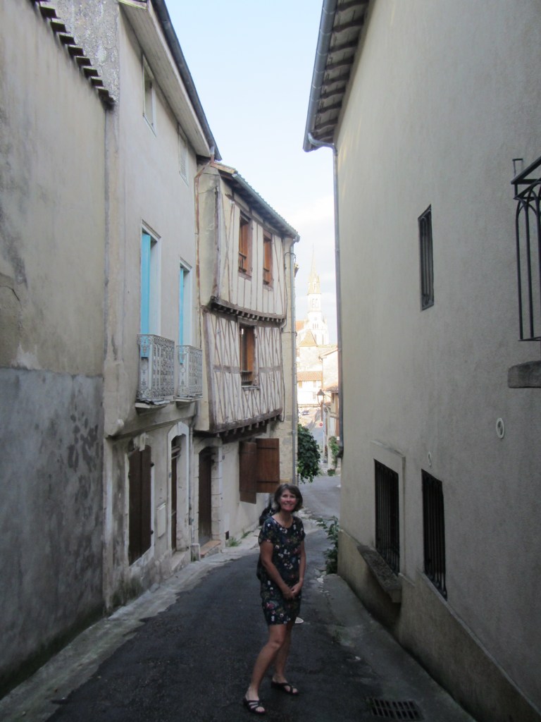 The temperatures soared and we were very thankful to finally descend to Narac , a really interesting very old town . Both very hot and bothered we enjoyed a lovely cold drink at the first bar we found . As we had just crossed the 2000 km point we also made the unilateral decision to stop in Nérac at a very nice comfortable hotel .