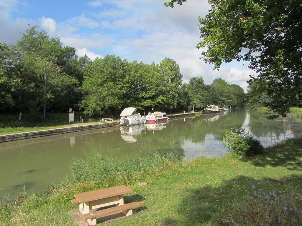 We rode to Agen next , to catch a train back to Bordeaux to avoid cycling part of the route we had done last week . Was a good day with a few hills before descending to the canal again and a flat last 20 km into the city of Agen .