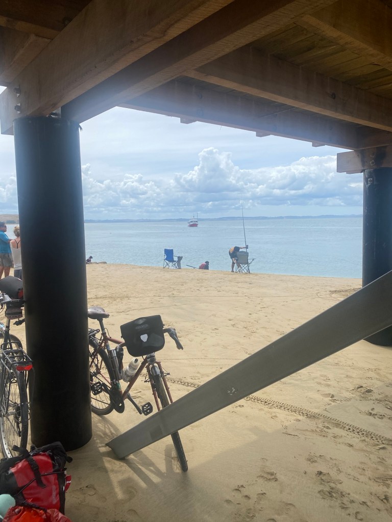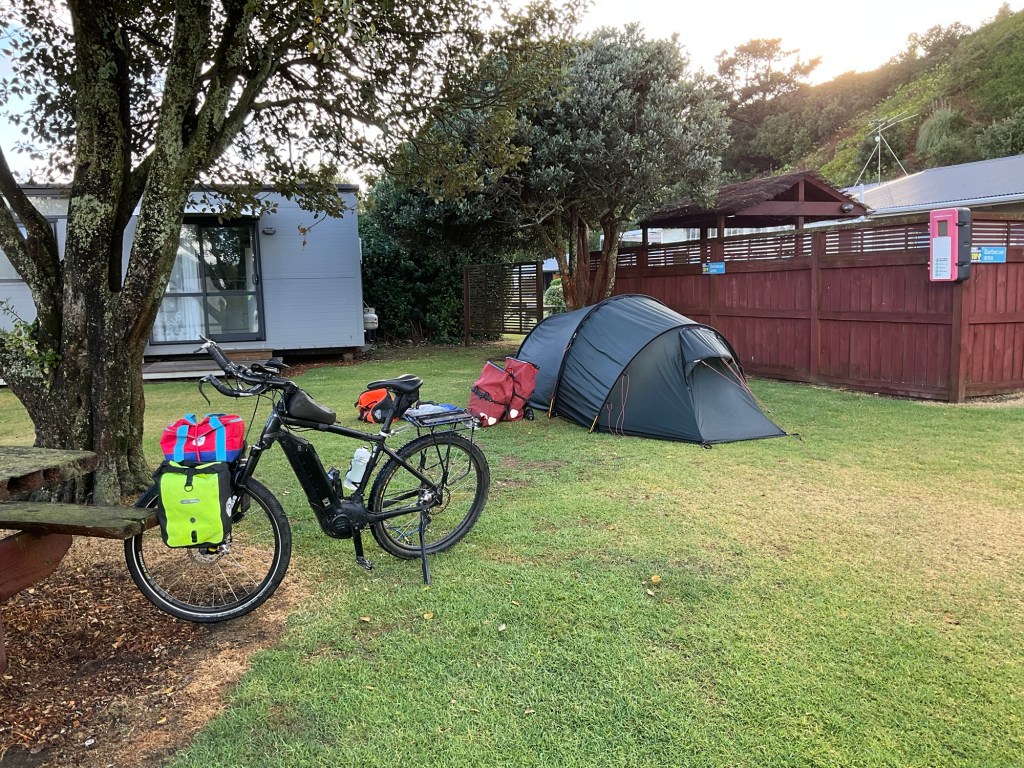 The train out to Papakura meant I avoided a part of the crazy Auckland traffic , but I still had a nice ride thru to Tuakau then across the Waikato river and on to Port Waikato Campsite .