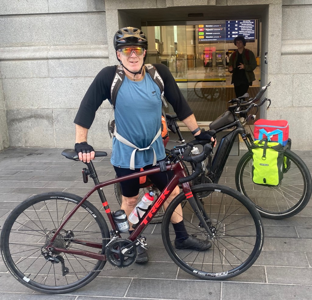 My nephew Daryl very kindly picked me up at 6:30 am , drove to Westgate where we cycled together into the city along the NW motorway cycleway . It was a pleasure to join him and we made a nice fast pace along the cycleway . Photo outside the Britomart rail terminal where he delivered me .