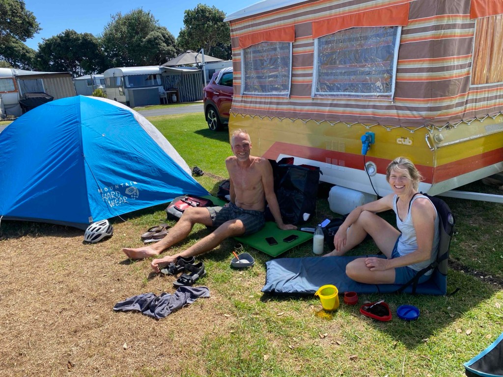 Was a chilly morning so I barely broke a sweat and rolled into Kawhia after a couple of hours . Camp looks just fine