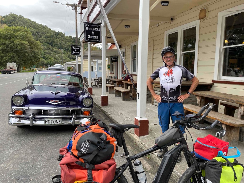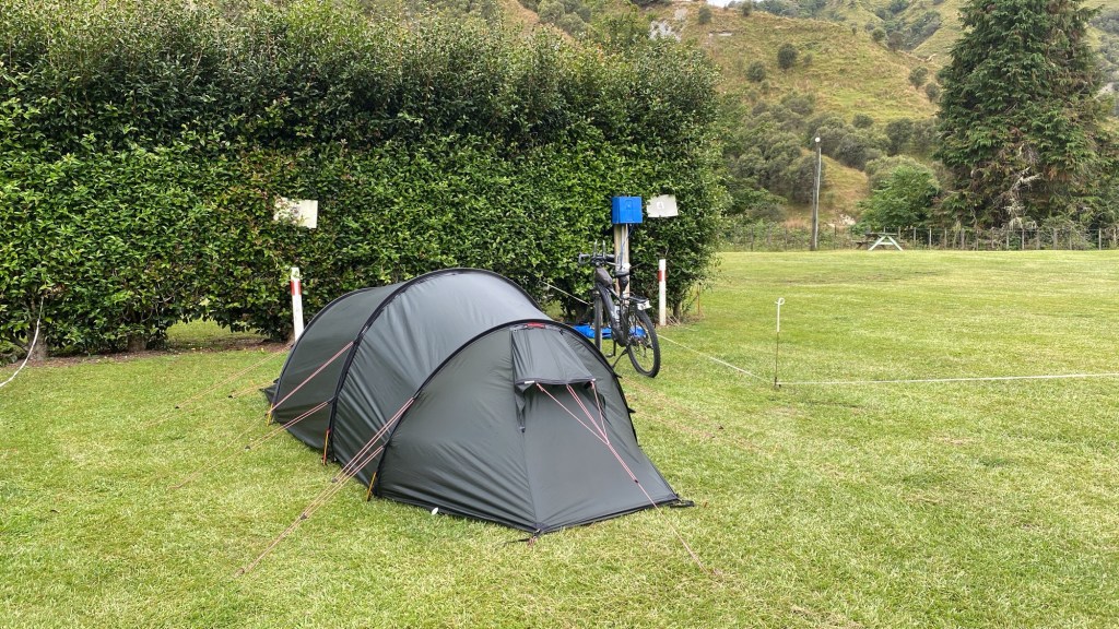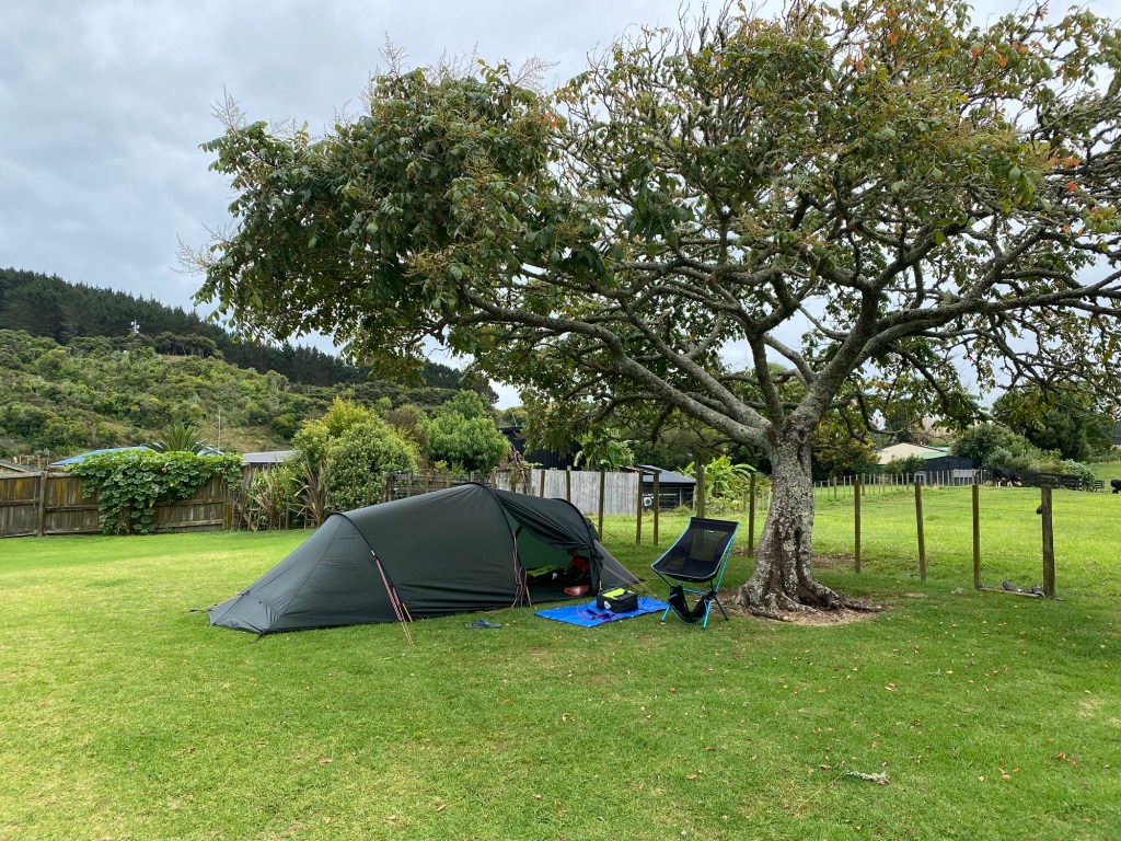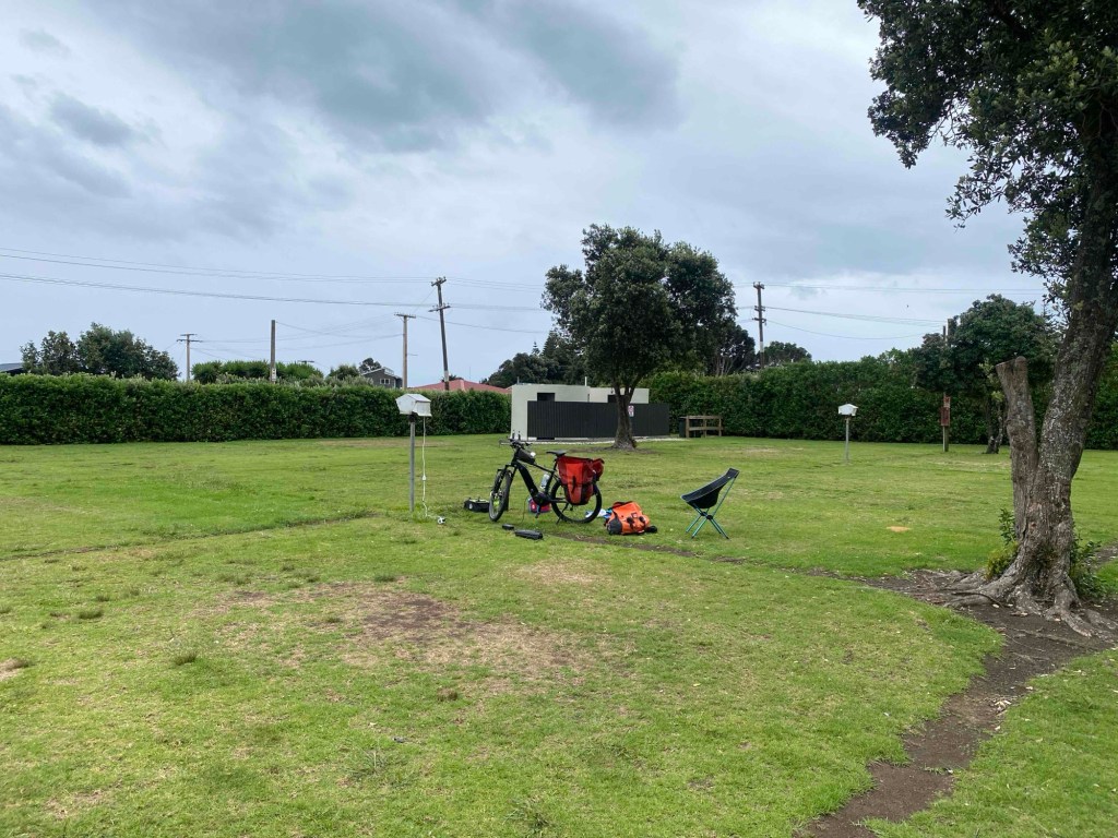Arrived at Stratford before midday and set up the tent , with rain on the way . My cousin Ross with incredible generosity travelled all the way up from New Plymouth to pick me up and run me back to NP to visit Torpedo 7 where I needed to get an essential bit of safety kit replaced . My LED rear reds , all three of them had failed . My thought is that these are vital safety assets and it is essential to have them on the busy sections .