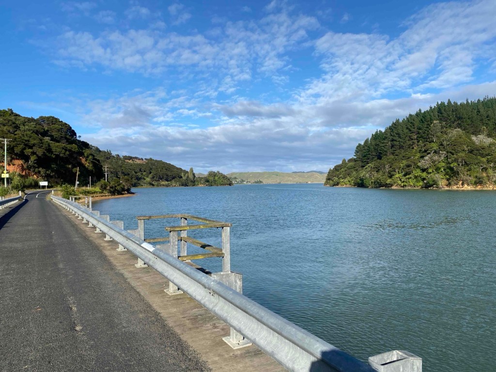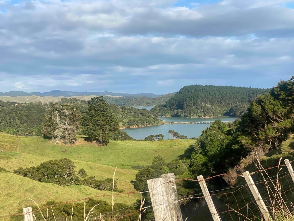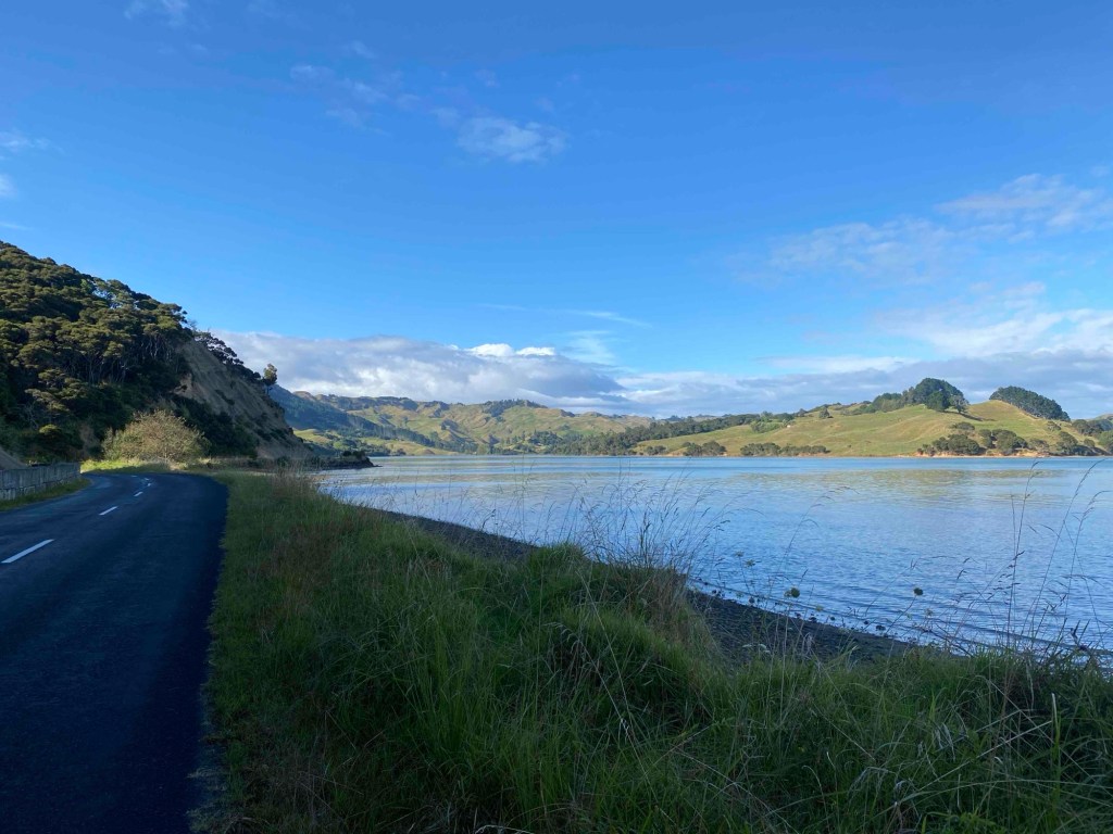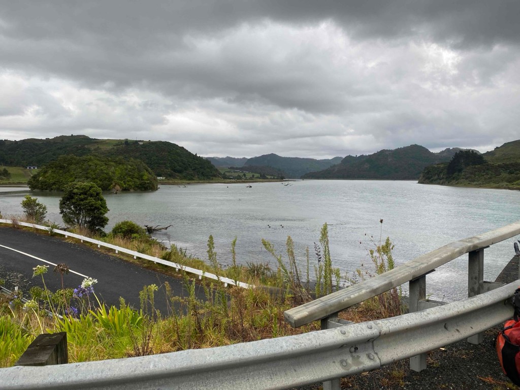 The road south from Kāwhia turned out to be a delight as after 20 km or thereabouts it turns off to the Harbour road which skirts the extensive octopus like tentacles of the picturesque Kāwhia harbour . The lack of cars made for another great ride , lots of hills along the route making ample vindication the Ebike choice .
