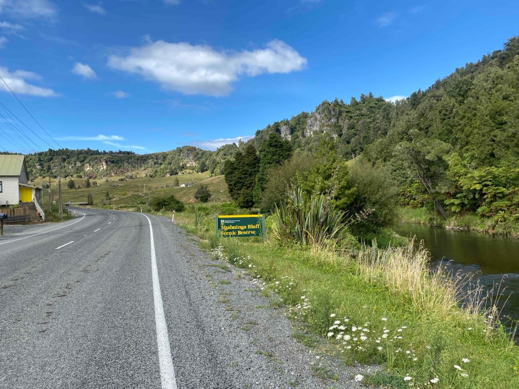 After 35 km of the SH3 and all the traffic I finally turned off onto the backroads , my entry towards what’s described as the “ Forgotten Highway “ A very enjoyable ride , a section of loose metal but superb scenery .