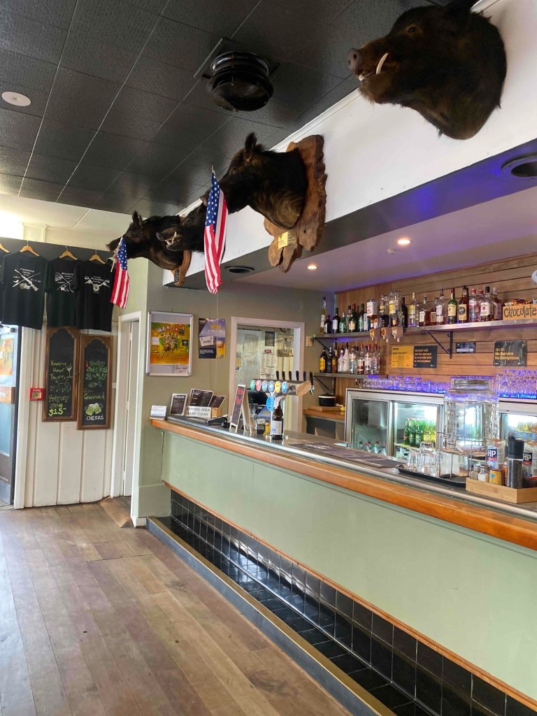 The road eventually popped out very near Awakino in the outrageously busy SH3 with lots of heavy traffic and mad motorists in aggressive clusters reminding me of why the backroads route was so magic by comparison . By now I was seriously thirsty , and was thankful to pull into the Awakino pub for necessary rehydration . The barmaid even filled my water bottle with added ice and a sweet smile .