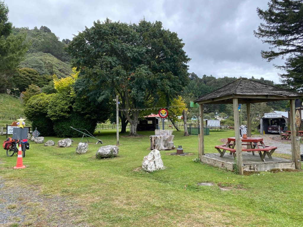 Whangamomona has an interesting old campsite managed by the eccentric Richard . Everything there and wild blackberries that demanded picking to supplement my 500 gm steak .