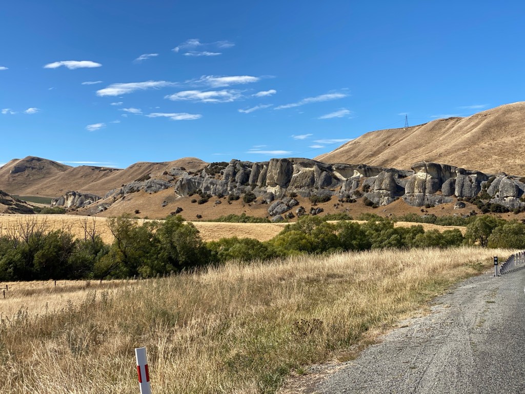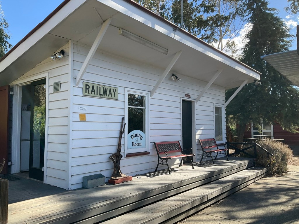The route then deviated to include back roads pretty well all the way to Hawarden . Plenty of brevet riders on the route so I played the game “ chase the rabbit “ and was amused at the WTF facial expressions as my outrageously cumbersome rig cruised on past . I briefly joined the main road again up over Weka Pass then sped down down down to my next campsite , ‘ Waipara Sleepers “ a railway themed camp with a bunch of old railway memorabilia , carriages etc.