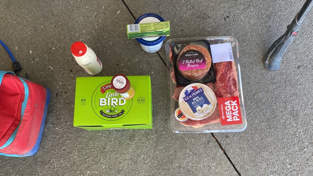 Was able to have a good break in Alex and visit the first decent supermarket I’d had a chance to visit since Geraldine . I closer look at this pic tells the story of what my nutritional priorities are I think you can make the argument that it’s pretty simple and an easy way to feed the body with what it actually really requires . Not much in the way of processed crap food that makes up your typical western diet , and nary a vege in sight ! YES the zero beer is my indulgence.