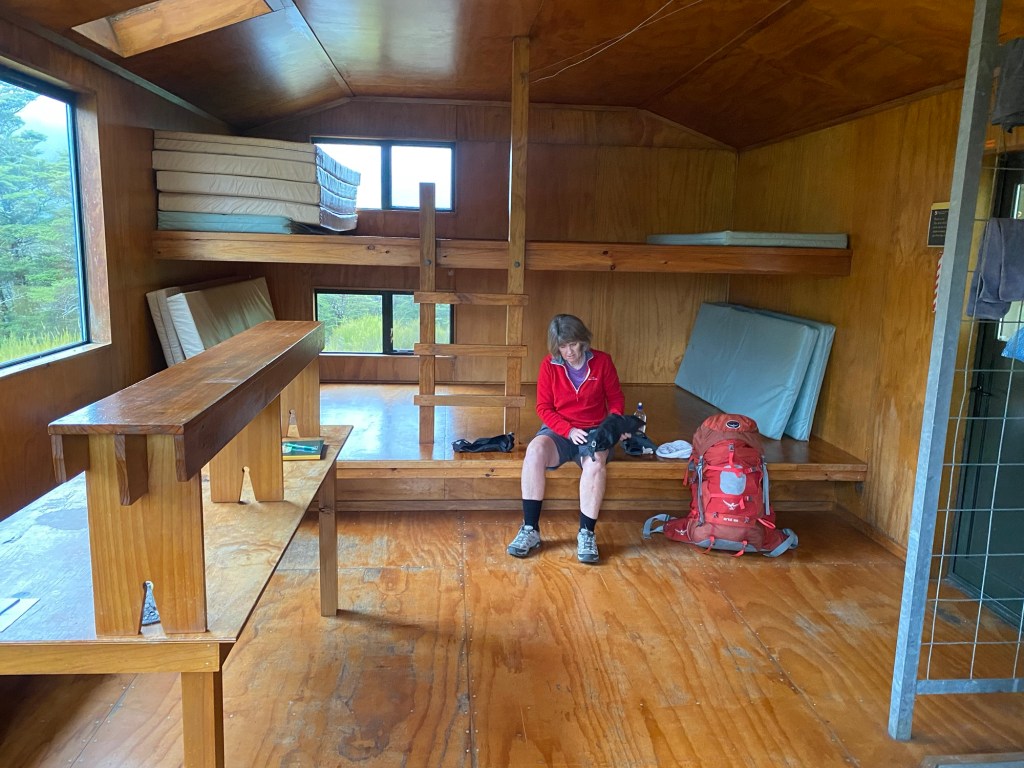 The little 6 bunk hut was really lovely , and again all ours .. just us . Plenty of space to spread out and have a relaxing restful afternoon . Barb even had a little sleep , well deserved after the taxing day yesterday.