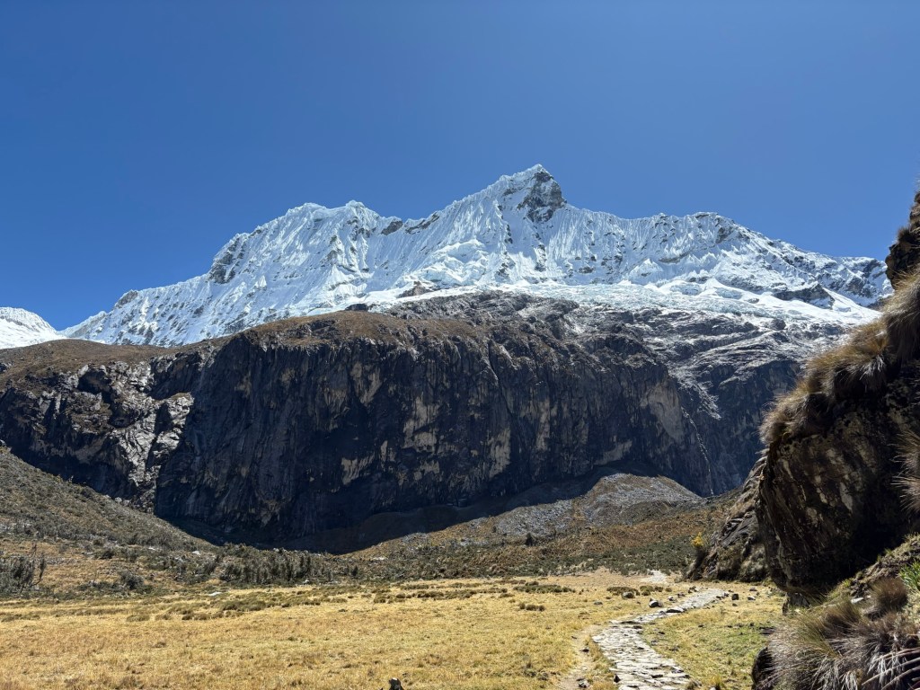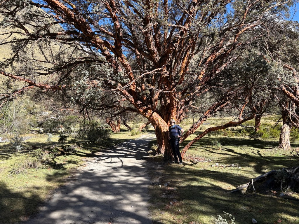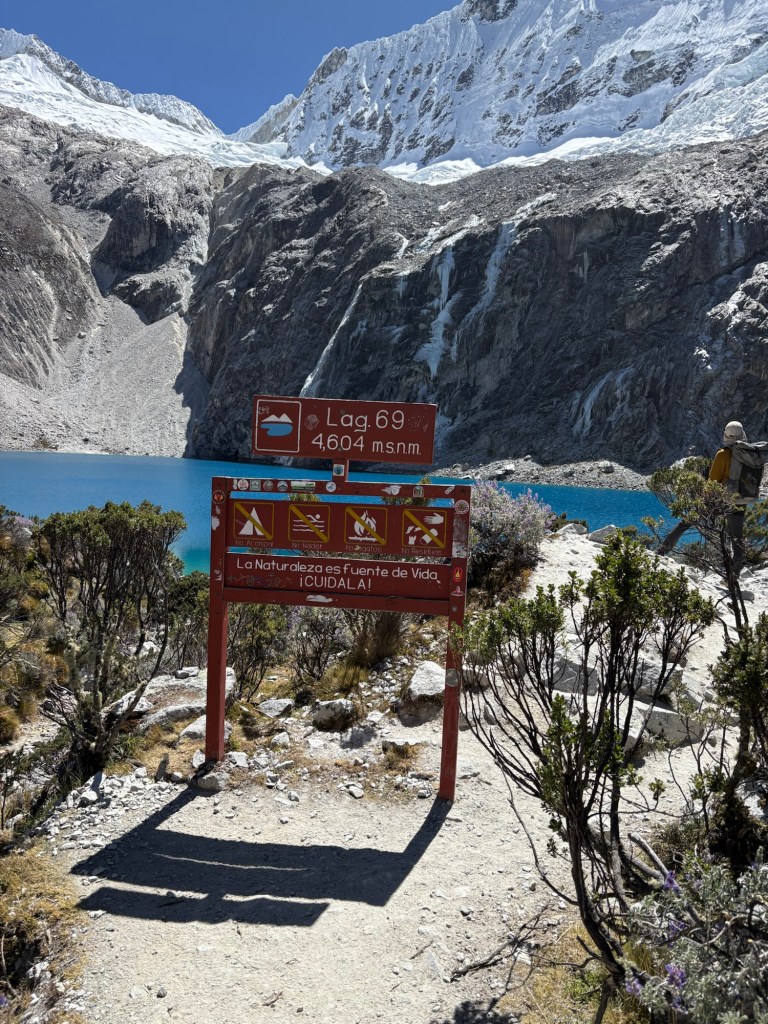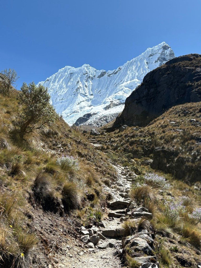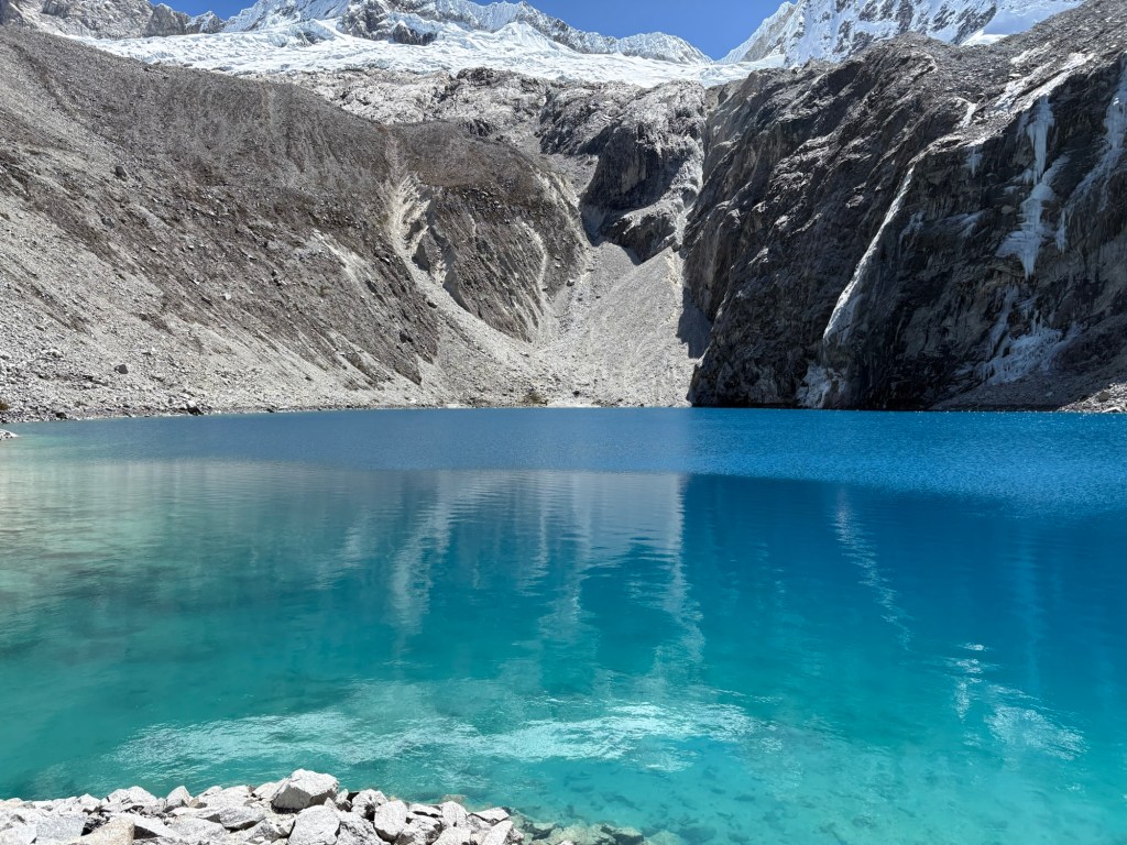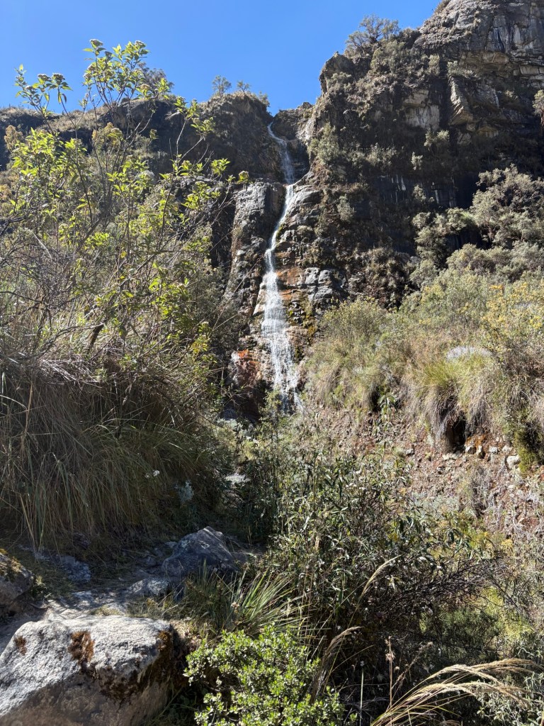 Stunning views as we slowly painstakingly made our way upwards .Moving too slowly we were given a garbled lost in translation message on our tour guides phone ( we called her Miss Vamos ) that we might not make it to the lake at our current rate of climb . I sped up , anxious to make it .